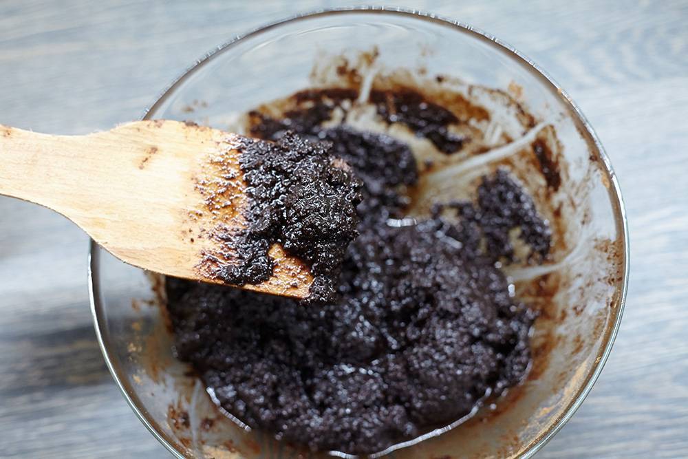 Не обращайте внимание на то, что масса плотная и больше похожа на грязь, все встанет на свои места, когда мы добавим яйца