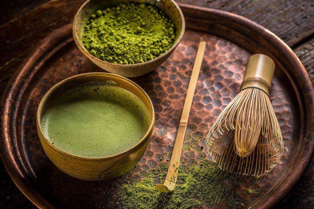 Это разновидность зеленого чая, который завозят, в основном, из Японии и Китая. Делают напиток из молодых листков, обработанных по специальной технологии. Потом их измельчают, чтобы получить ярко-зеленый порошок. Чай пьют без сахара, достаточно залить матчу кипятком, взбив венчиком.