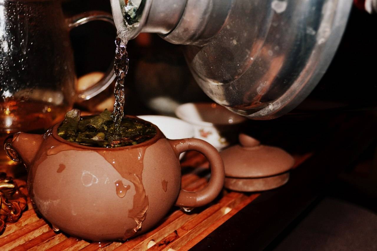 В заварочный чайник помещают сухую заварку и заливают его кипятком в несколько приемов. Если это черный чай — то в два приема, залив первый раз до половины объема.