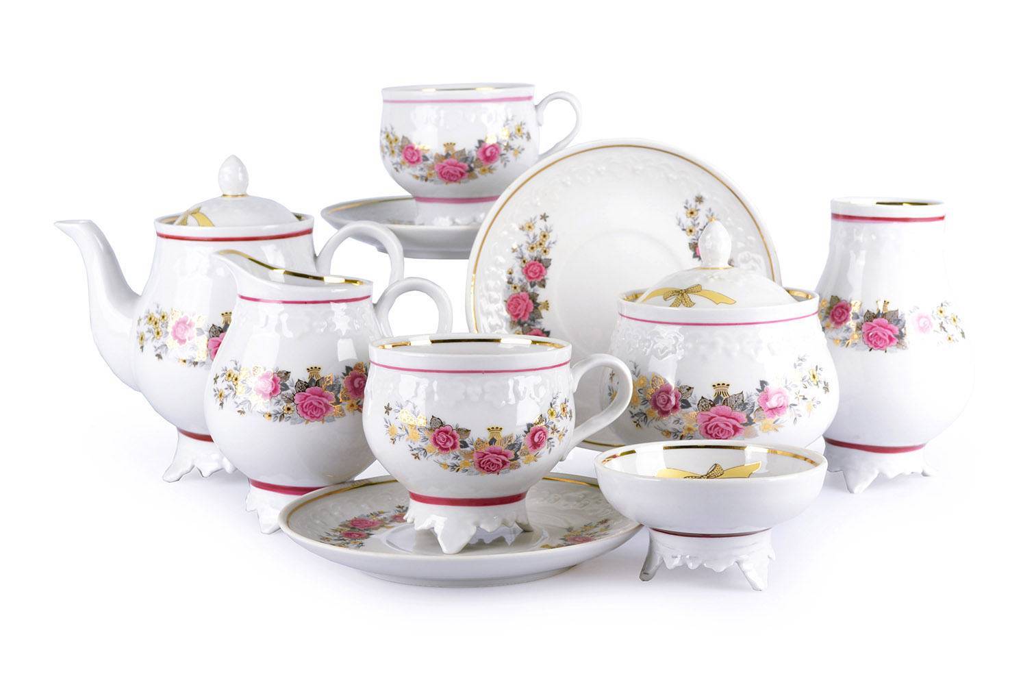 Как понятно из названия, чайный сервиз используется для приятного чаепития из чашек, выполненных в едином стиле. Такие наборы также могут комплектоваться предметами на 6 или 12 персон. В состав чайного сервиза чаще всего входят: