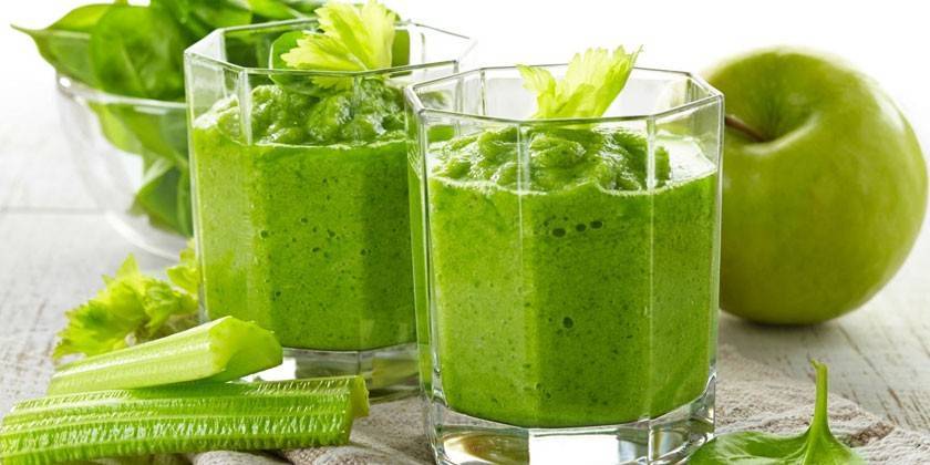 Приготовление: стебли сельдерея и листья шпината помойте. Поместите в блендер 2 стебля сельдерея, пучок листьев шпината, стакан воды, сок половины лайма, 1 банан. Взбейте все ингредиенты до однородной консистенции.