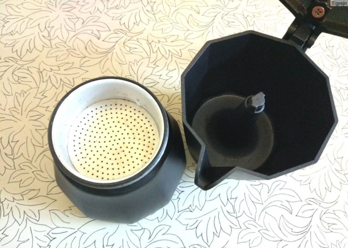 Перед тем, как пользоваться кофеваркой первый раз, внимательно читают инструкцию. Затем отвинчивают верхнюю часть устройства и вынимают фильтр в форме ситечка. В нижний резервуар наливают очищенную воду, из которой будут готовить напиток. Ее количество не должно превышать риску, нанесенную внутри емкости.