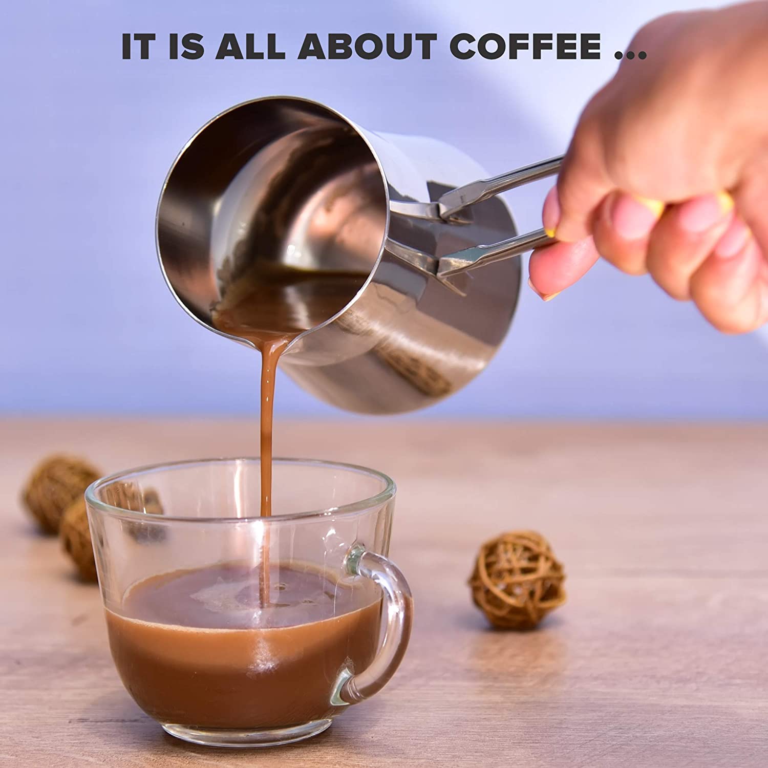 Отсюда второе важное правило – объем турки должен вмещать не более 120 мл, чего достаточно для кофейной чашки 50-80 мл. Если вы любите пить кофе в чашках по 150-200 мл, то выбирайте посуду большего объема, но помните, что готовить полпорции в турке нельзя