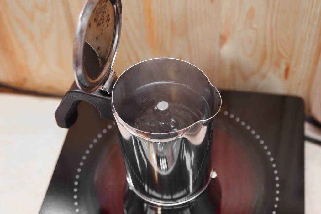Предварительно нужно залить чистую холодную воду в секцию для жидкости и засыпать молотые кофейные зерна в секцию для сырья. В процессе нагревания воды пар проходит через молотый кофе, благодаря чему собственно и происходит процесс приготовления напитка.