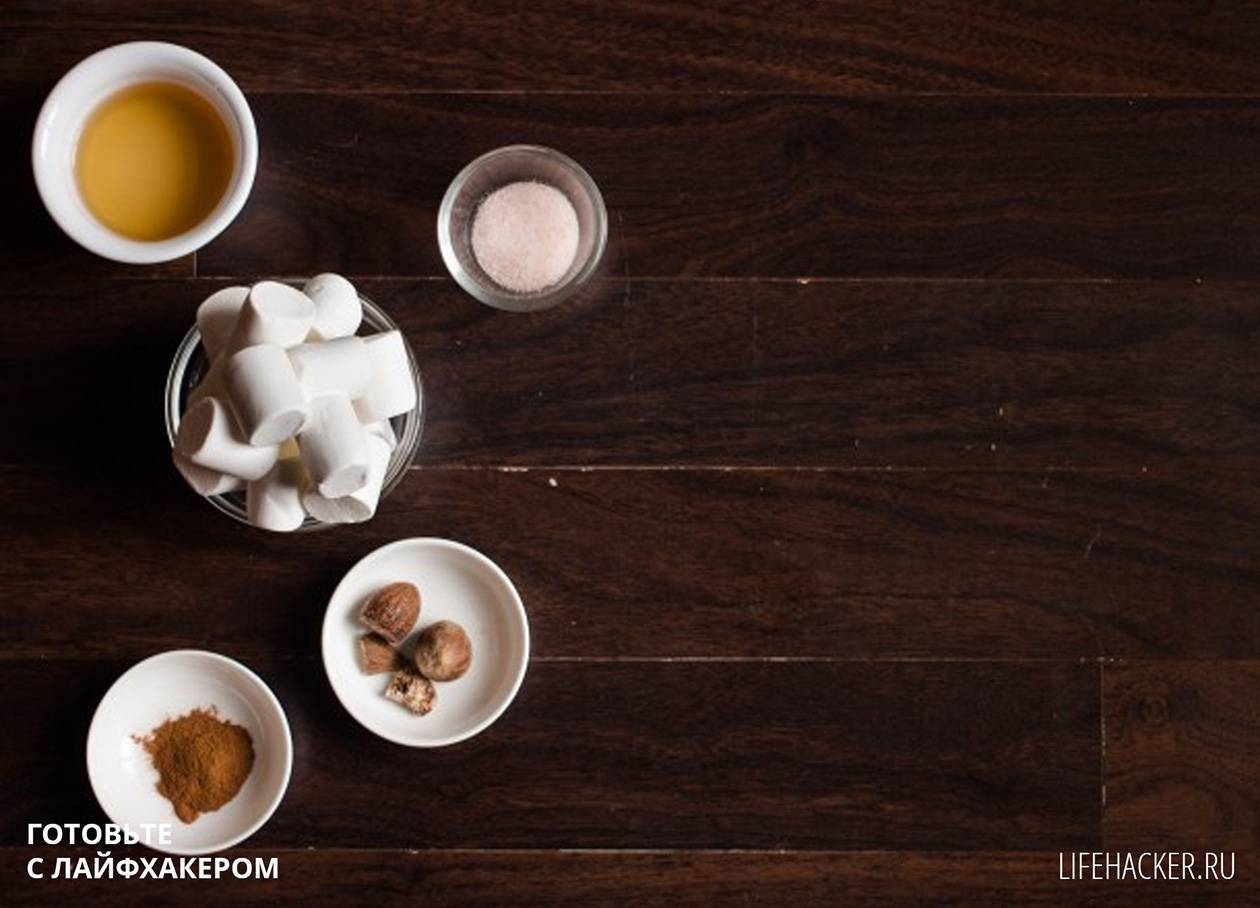 Перед подачей домашний горячий шоколад можно украсить сверху маленькими пастилками – маршмэллоу.