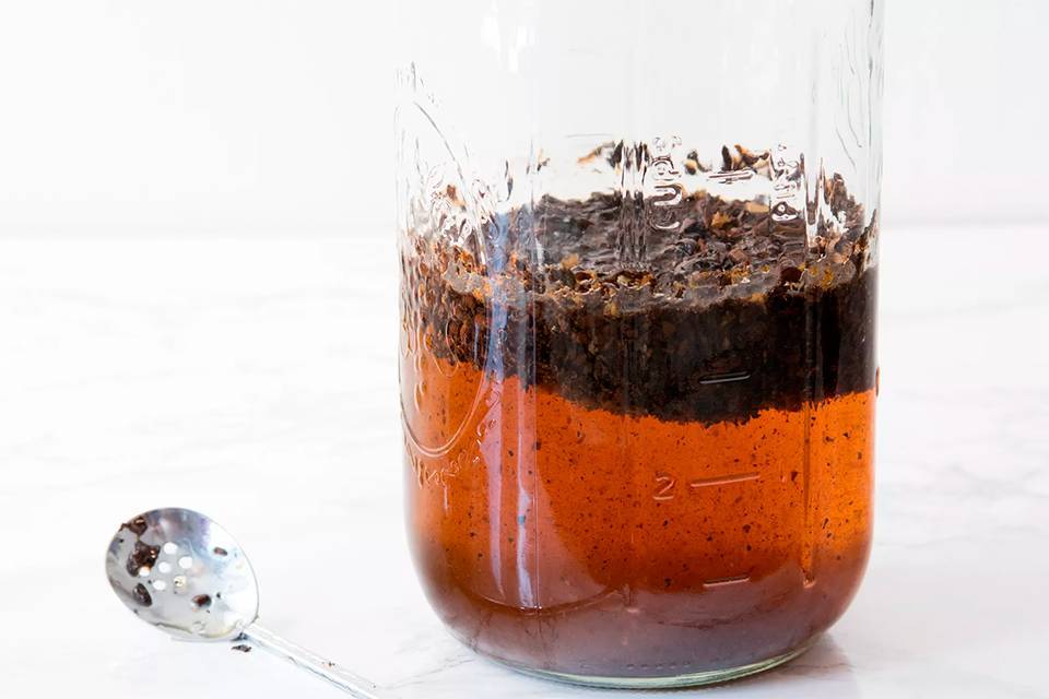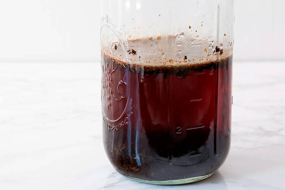 Накройте контейнер крышкой или полиэтиленовой пленкой. Поместите его в холодильник и оставьте на 12 часа. Можете оставить до 24 часов для большей крепости, в зависимости от вашего личного вкуса.
