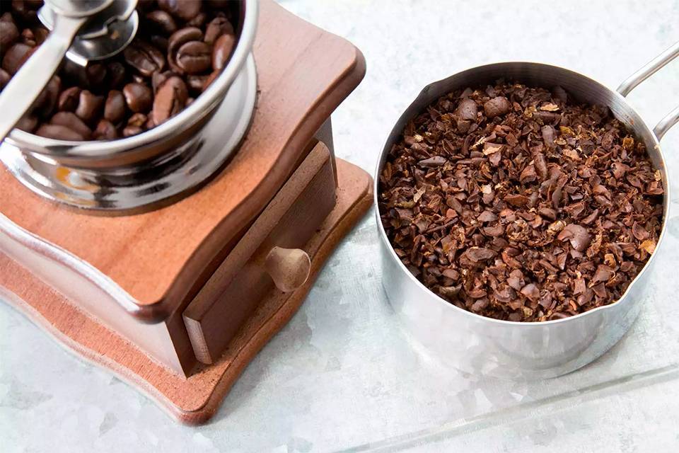 Измельчить 1 чашку грубого помола кофейных зерен.
