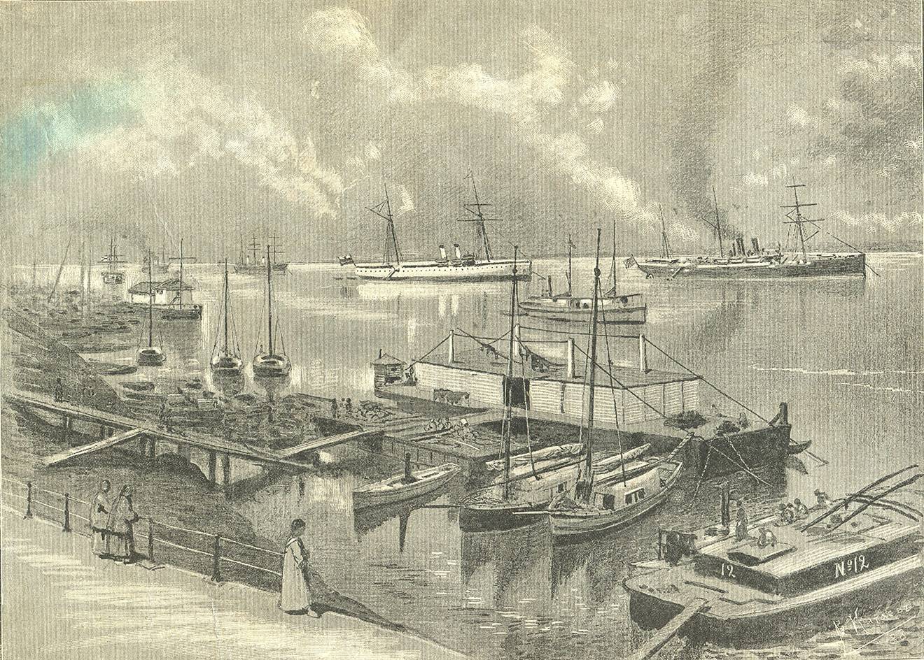 Вид гавани в Ханькоу. Гравюра. 1889 год