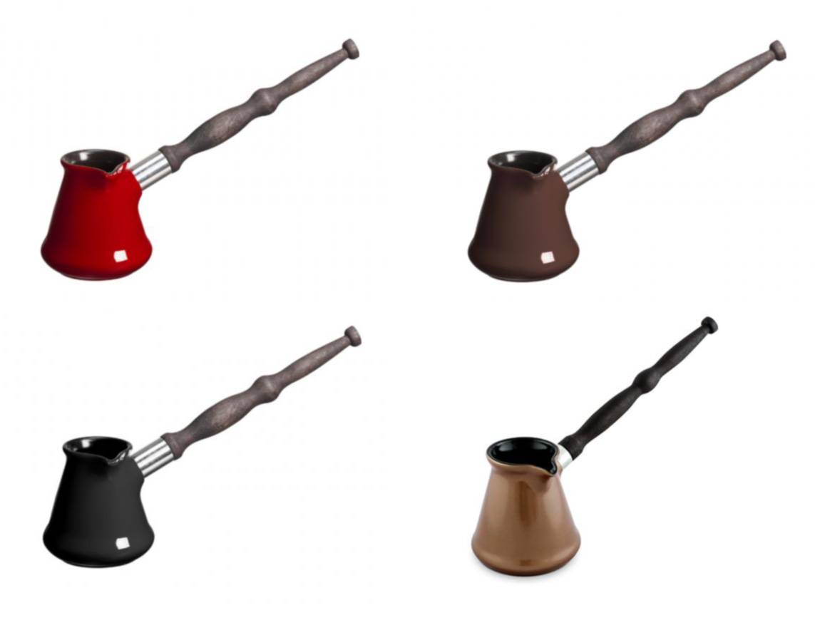 Пластичность керамики позволяет выпускать турки небольших объемов и выдерживать классическую конусообразную форму. Турки этой фирмы различаются между собой только цветом и объемом.