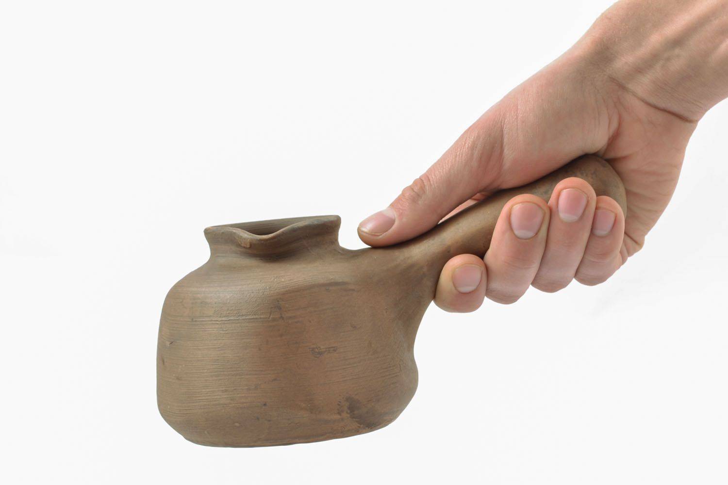 - Глиняная турка изготовлена из обожженной, но не глазированной глины.