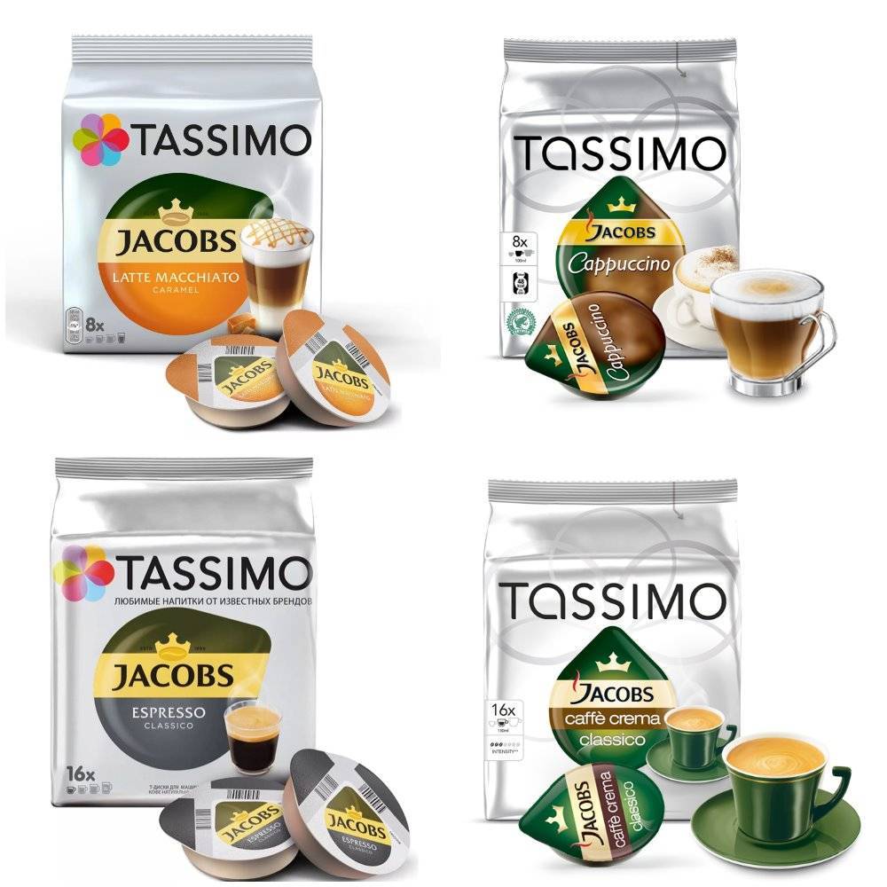 - Кофе в капсулах Tassimo. Продукция создана для кофейных машин и выпускается нескольких видов: Espresso отличается насыщенным вкусом и горьковатыми нотками, Crema – мягкий, с небольшим количеством кофеина, Latte macciato – с нежной молочной пенкой.