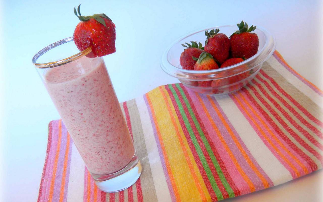 Для этого рецепта взбивают молоко, клубнику и сахар (лучше всего подойдет коричневый). В стакан со льдом наливают кофе, смесь из взбитых ингредиентов. Украшают листиками мяты.