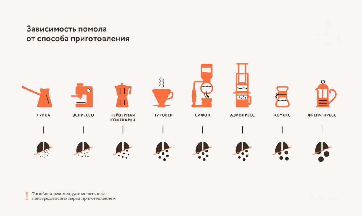 На выбор помола влияет метод заваривания напитка и внешние факторы: процент влажности воздуха, температура в помещении, уровень атмосферного давления.атмосферные условия.