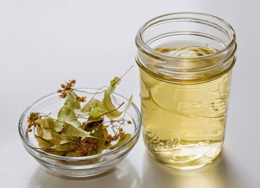 Идеальная тара для приготовления травяных напитков — термос с плотной крышкой. Заливаем 3 столовые ложки сушёной липы водой температурой 70 градусов. Оставляем чай на полчаса, чтобы он хорошо настоялся и остыл. Таким образом, мы сохраняем максимальное количество полезных свойств липового чая. После охлаждения напиток становится вязким, что связано с содержанием в цветках дубильных веществ, сахара и воска. Чем крепче получается настой, тем больше сушёные соцветия выделяют слизь.
