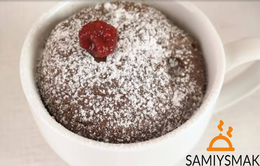 - Соедините сухие и жидкие ингредиенты в единое целое. Тщательно промешайте. Переложите по кружкам. Пеките в микроволновке. Время установите от 3 до 5 минут. Украсьте сахарной пудрой и ягодами.