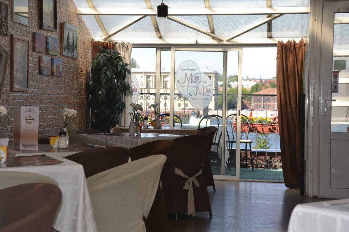 Кофейная терраса расположена на втором этаже и выходит либо во внутренний петербургский живописный дворик, либо на набережную с видом на Неву. Уютное место, в котором можно, в том числе, и перекусить. Ценник – несколько выше среднегородского, например, капучино стоит 220 рублей за 200 мл, двойной эспрессо – 150 рублей за 60 мл. Впрочем, обладателям билетов на экскурсию – скидка 25%.