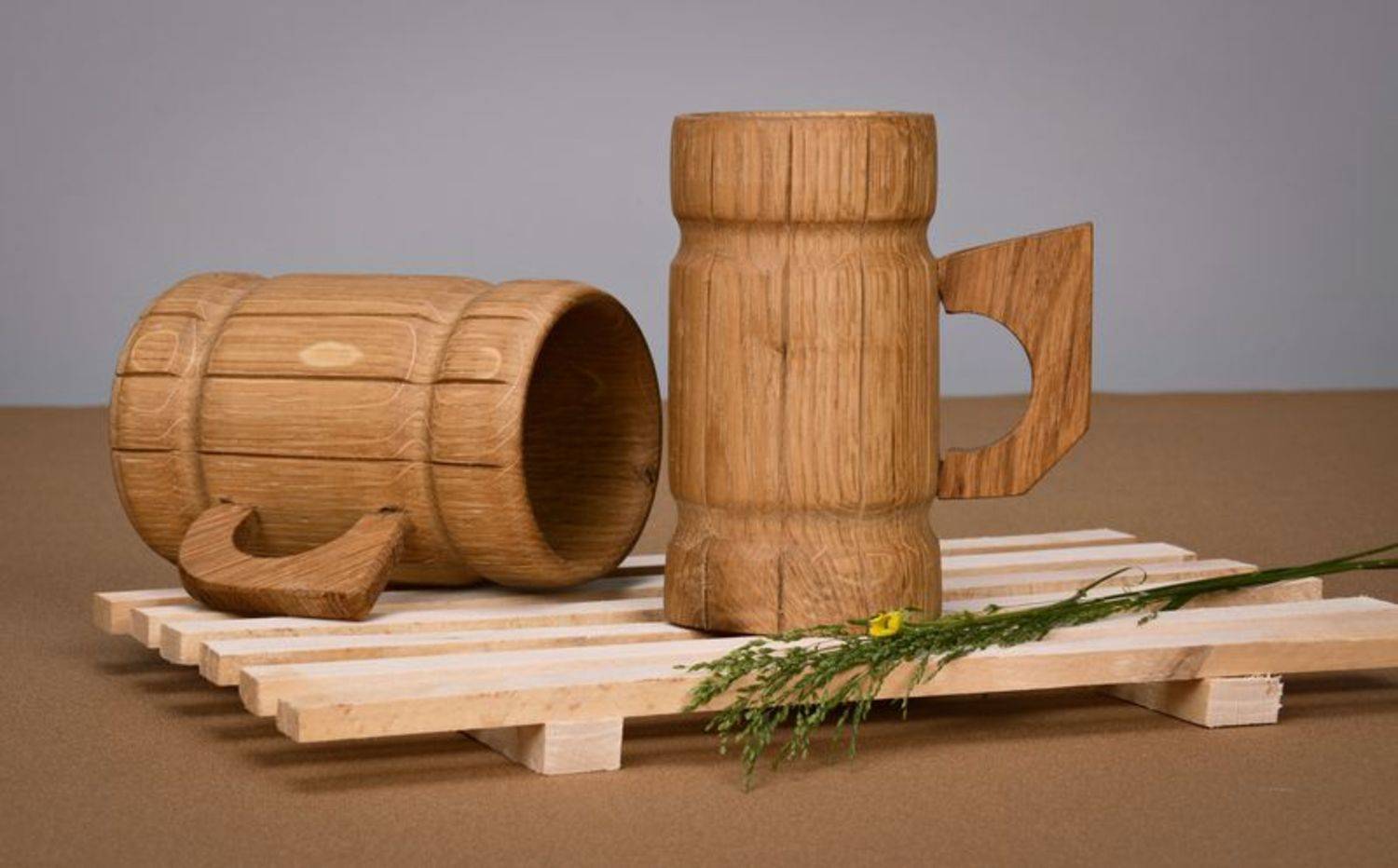 Дубовые кружки для пива получаются прочными, стойки к влажности.