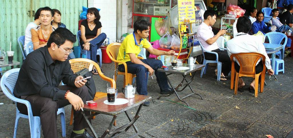 Обычно во вьетнамских кафе не подают еду. Есть новые заведение, которые предлагают посетителям фастфуд, но они встречаются весьма редко. Местные обычаи предполагают посещение одних мест для полноценного питания и других – для приятного времяпрепровождения за чашечкой кофе.