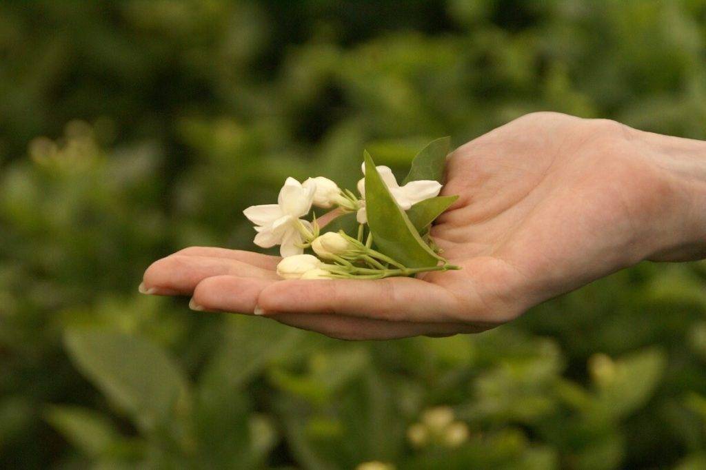 Титестеры советуют добавлять цветки жасмина в зеленый, черный и белый чаи. Их названия связаны со способом обработки листьев. Сбор цветков считается сложным процессом, который начинается в июле, а завершается в октябре. Максимальное содержание эфирных масел присутствует в лепестках. Максимальный аромат цветка ‒ ночь, когда он раскрывается. Поэтому его нужно собирать до восхода солнца. Таким способом сохраняются полезные свойства.