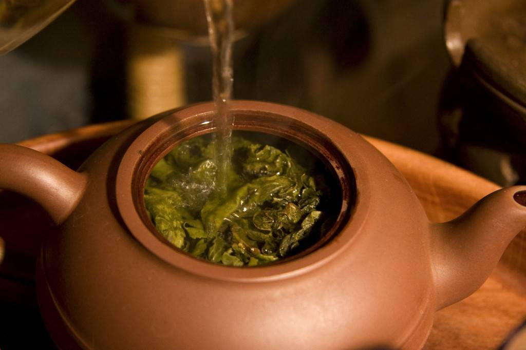 - Сначала чайник, предназначенный для заварки, обогревают, залив в него небольшое количество кипятка.